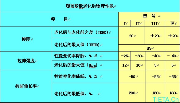 Ⅰ覆盖胶耐热试验后的物理性能符合表中规定。