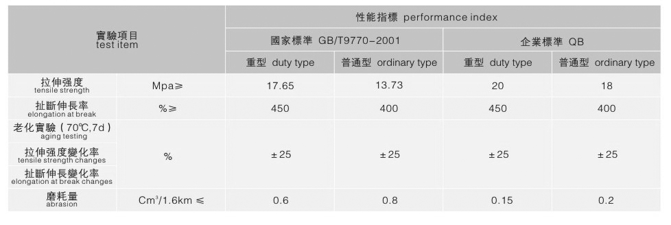 产品具有抗拉强度高,伸长率小,成槽性好、耐曲挠、耐疲劳,特别适用于高强度长距离、大运量场合下输送物料。