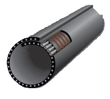 管状输送带与圆管式输送机配套使用、借助外力在整个运输路线或部分运输线路成圆管形状。管式输送带的带芯以高强力帆布或钢丝为骨架,配以高强度、高耐磨优质胶料为上下覆盖层,工作时胶带由平面渐变为U形,最后卷成管状以实行封闭式输送。广泛应用于冶金、电力、化工、港口、码头、建材、矿山、粮食等行业散装物料的密闭输送。